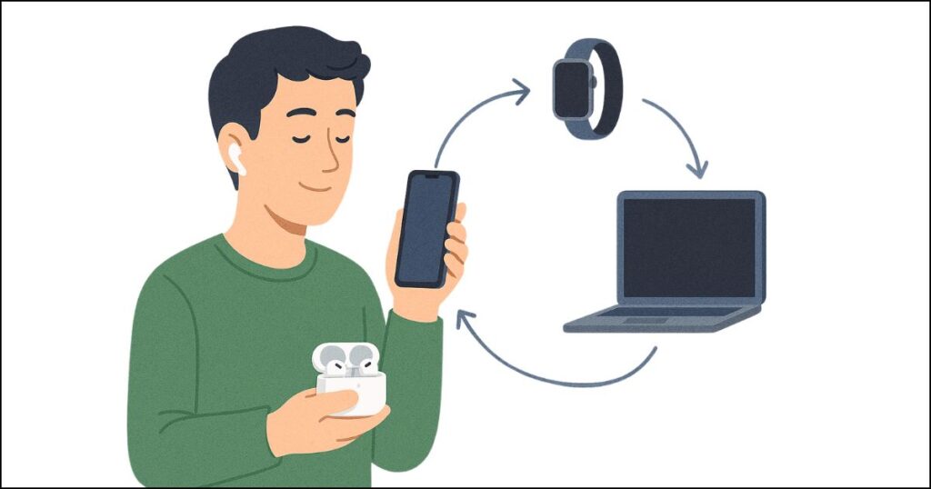 Apple IDに紐づいたすべてのデバイス間で、まるで一つのイヤホンのように使える感覚は、一度体験すると他には戻れない便利さです。