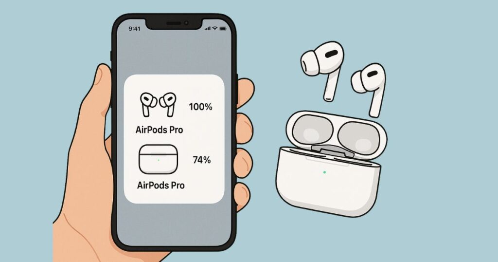 AirPods ProのケースをiPhoneの近くで開くだけで、イヤホンとケースそれぞれのバッテリー残量がポップアップで表示されます。