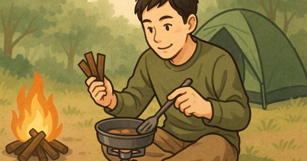 一人キャンプでは焚き火を楽しみたい気持ちもありますが、設営・調理・片付けまでを一人でこなすソロキャンプでは“効率”も重要なキーワード。