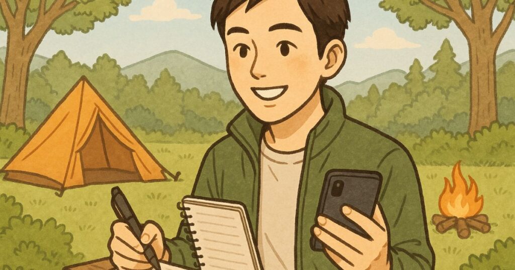 たとえば「Day One」は、写真・文章・位置情報を組み合わせて日記のように記録できるアプリで、キャンプ地での気づきや景色を簡単にメモとして残せます。