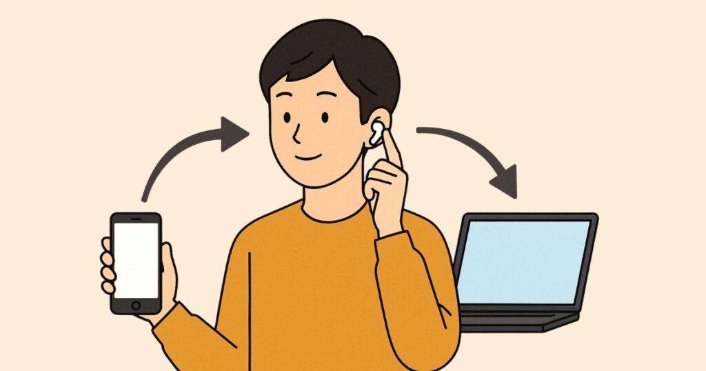 従来のBluetoothイヤホンでは機器ごとに接続操作が必要でしたが、AirPods Proなら面倒な切り替え作業から解放されます。