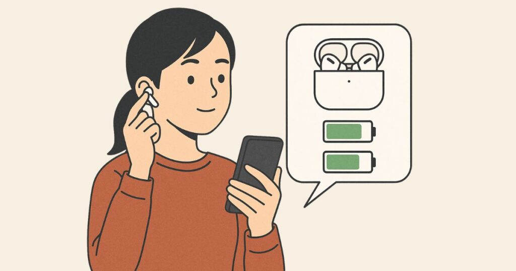 • Siriで確認:「Hey Siri、AirPodsのバッテリー残量は?」と聞けば、ハンズフリーで残量を確認できます。