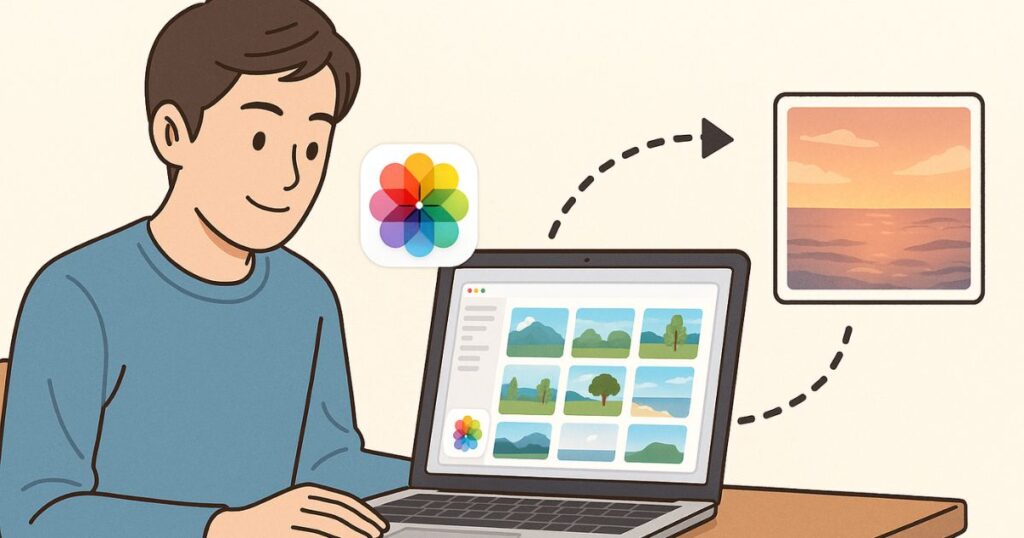 Macの写真アプリに保存された画像は、アプリ内だけで閉じていると思われがちですが、実は簡単な操作でFinderへ直接“ファイルとして取り出す”ことが可能です
