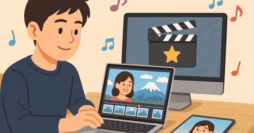 映像編集の知識がなくても、直感的な操作で完成度の高いムービーを作れるのが魅力です。
