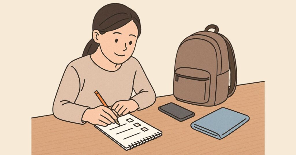 チェックリストは紙でもスマホのメモアプリでもOKですが、NotionやGoogle Keepなどのクラウドベースのツールを使えば、旅先でも確認・修正がしやすく便利です。
