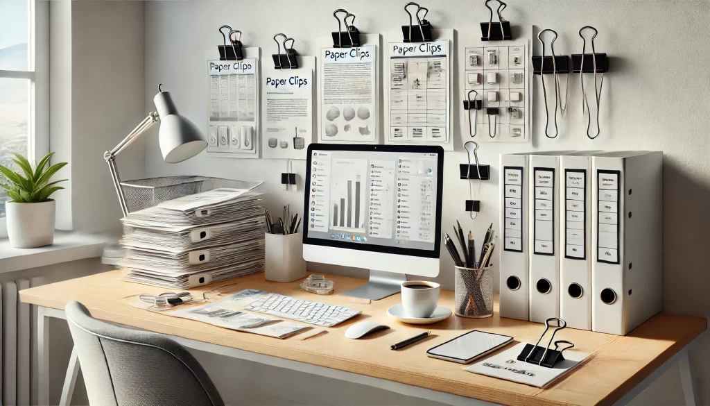 - 書類をカテゴリ別に整理:異なる色のクリップを使用し、プロジェクトごとやタスクの種類ごとに分類することで、必要な書類をすぐに見つけられます。