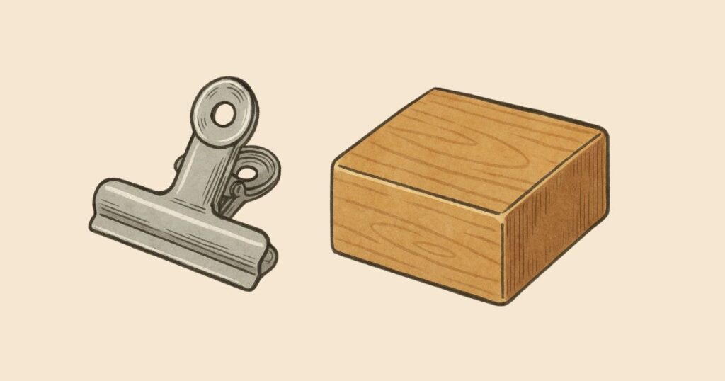 専用のレザークラフト用クリップもありますが、洗濯ばさみや文房具用クリップで代用可能です。
