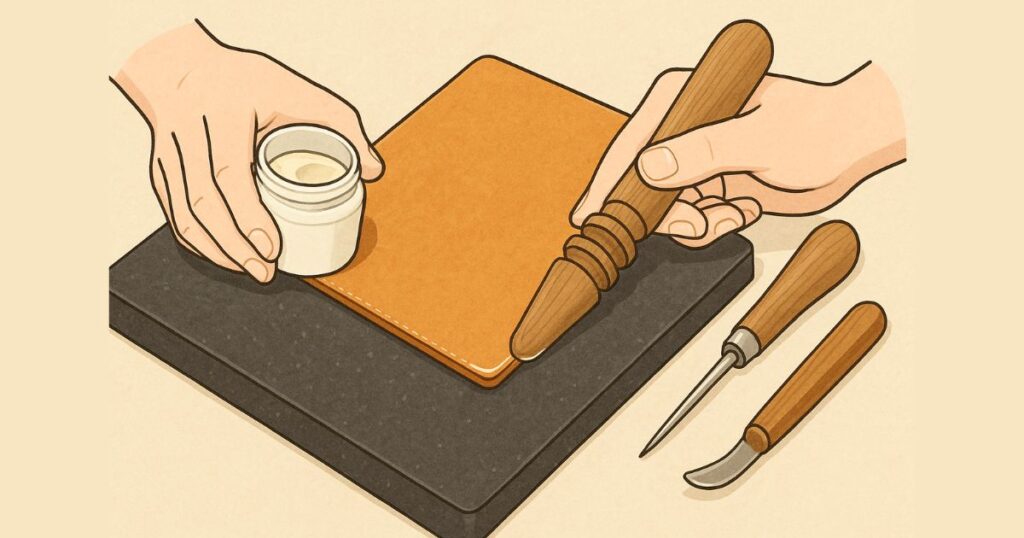 古い革や硬い革を使う際に便利で、縫いやすさや仕上がりの美しさを左右する重要なサポート役になります。
