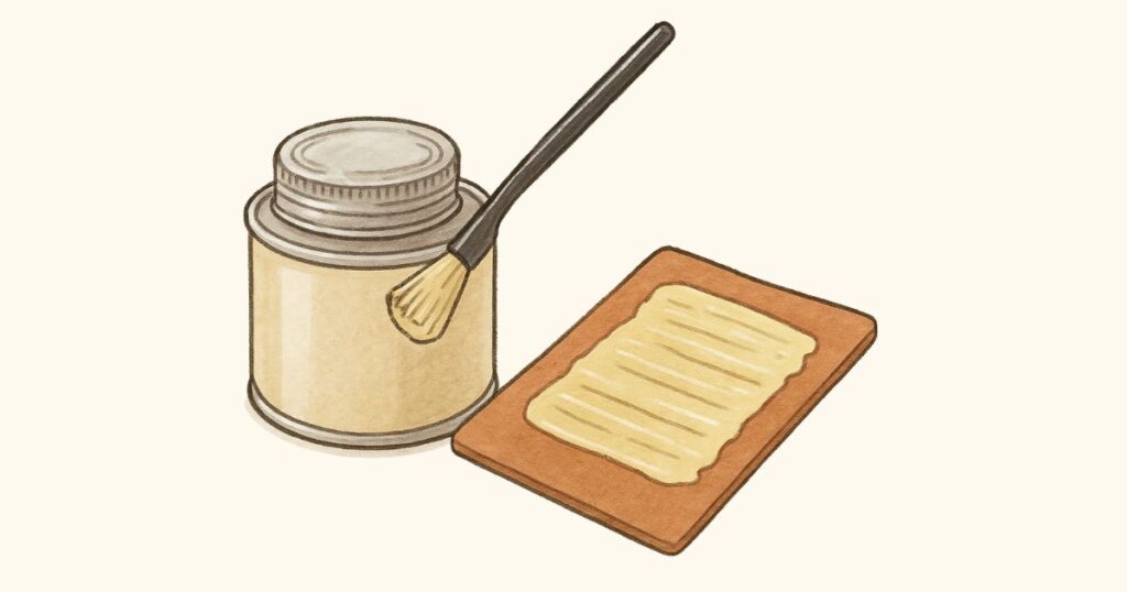 透明タイプのほか、黒や茶色など色付きもあり、革の色に合わせて使うことで仕上がりがより自然になります。