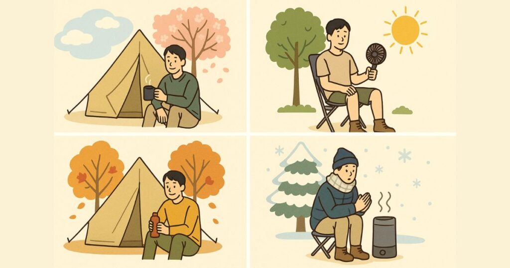 キャンプは自然と向き合うアクティビティだからこそ、季節に応じた持ち物選びが快適性と安全性に直結します