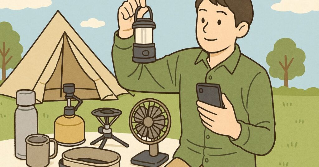 • モバイルバッテリーやコンパクトランタンなど多機能ギアを選ぶと便利