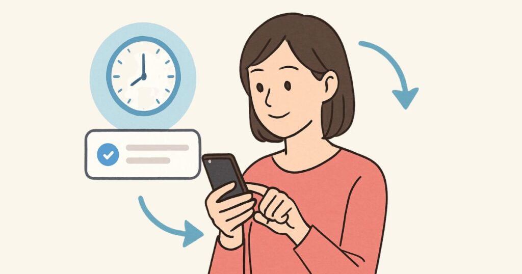 時間に合わせてリマインダーが表示されることで、自然と行動が定着していきます。