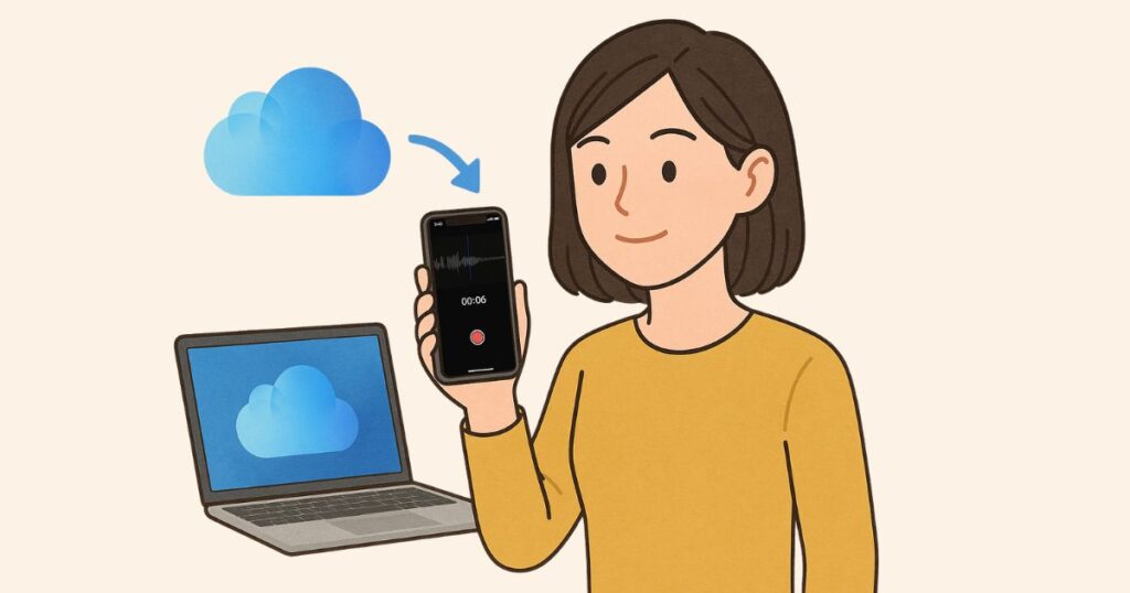 iPhoneで録音した内容は、自動的にiCloudにアップロードされ、同じApple IDでログインしているすべてのデバイスにリアルタイムで反映されます。